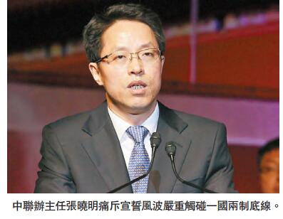 张晓明指出:「近几年来,『一国两制』在香港的实践遇到了一些新情况、新问题、新挑战。这是『一国两制』这样一个新生事物在实践过程中必然要经历的历史阶段。香港目前出现的许多问题,无论是经济、民生方面遇到的一些难题,还是社会政治生活中出现的一些乱象,都有比较复杂的成因,也都带有一定的阶段性特徵。」他说:「从全局上来说,没有人能否认『一国两制』实践已经取得了举世公认的成功;没有人能否认香港总体保持了繁荣稳定的局面;没有人能否认香港与祖国内地的关系越来越紧密,并从祖国内地的强劲发展中获得应对多次危机、战胜各种风险的强有力支撑;没有人能否认香港仍然保持资本主义制度特色,仍然是世界上公认的自由度最高、法治最健全的地区之一;也没有人能否认,香港居民今天所享有的民主权利是回归前所无法比拟的。」