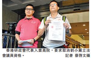【香港商报网讯】香港研政会昨日向高院入禀选举呈请,要求法院宣判刘小丽未能满足当选条件,其议席失效悬空。