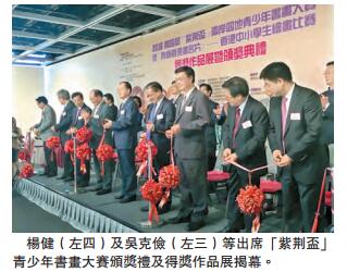【香港商报网讯】记者叶佩瑜报道:2016第四届「紫荆盃」两岸四地青少年书画大赛暨「我为香港画名片」香港中小学生绘画比赛获奖作品展及颁奖典礼昨於香港大会堂举行,中联办副主任杨健、教育局局长吴克俭等均有出席。紫荆杂志社社长杨勇致辞批评「港独」指,香港是中国的一部分,艺术可以培养正能量,抹黑香港的人到头来只会抹黑自己。