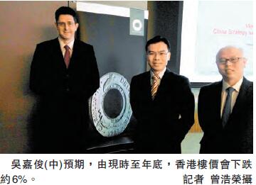 吳嘉俊另坦言,樓價明年復蘇是「不科學」,但按過去經驗,每當政府推出樓市調控措施,香港樓價都會快速復蘇。他又進一步指出,預期由現時至年底,香港樓價會下跌約6%,剛好抵銷了早前升幅,而新升勢可能始於明年第3季。