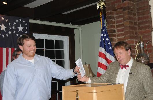 2016年11月8日(美国大选·XHDW)(1)准备投票11月7日晚,在美国新罕布什尔州迪克斯维尔山口小镇,一名男子坐在计票板旁。