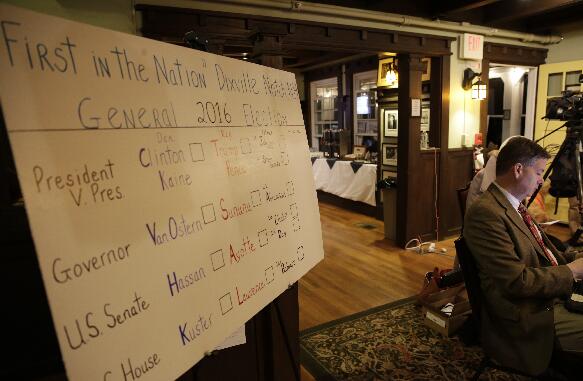 迪克斯维尔山口小镇的选民将在当地时间11月8日零时开始投票,2016年美国总统选举的选举日投票由此开始。