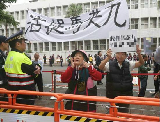 但另一邊,抗議者拉出橫幅“活捉馬英九”,高喊“收押馬英九”
