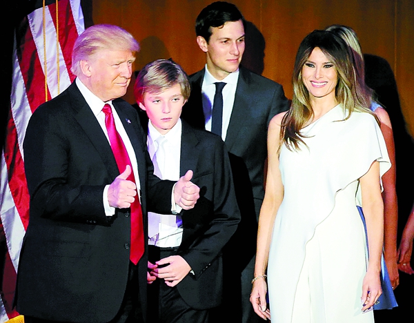 在得知勝選后,特朗普偕同家人到競選總部接受支持者的祝福。路透社