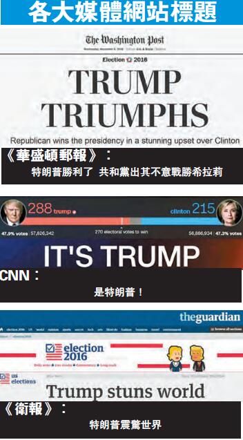 【香港商報訊網】今年美國總統選舉昨日落下帷幕。一直被看淡的共和黨候選人特朗普最終以274比218的選舉人票,意外擊敗民主黨對手希拉莉,當選美國第58屆總統。