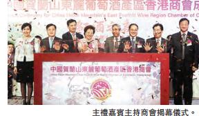 【香港商報网訊】記者余江強報道:中國賀蘭山東麓葡萄酒產區香港商會(簡稱「香港寧夏紅酒會」)昨日舉行成立典禮。中聯辦副主任仇鴻,外交部駐港副特派員胡建中,寧夏自治區政府原副主席、寧夏賀蘭山東麓葡萄與葡萄酒國際聯合會主席郝林海,自治區政府副秘書長馬雲海,中國科技體制改革基金會理事長張景安,港區省級政協委員聯誼會主席陳清霞,寧夏政協常委、港澳臺僑委員會副主任李學盟,寧夏自治區葡萄產業發展局局長李學明等主禮嘉賓與現場約300位嘉賓共同見證商會成立。