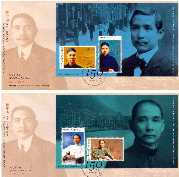 11月10日,香港邮政在记者会表示,中国邮政、香港邮政和澳门邮政12日将共同发行一款纪念套摺。纪念套摺内附小全张乙张,嵌有三地邮政发行的整套“孙中山诞生一百五十周年”邮票。