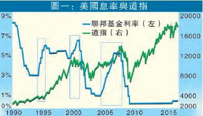 那明年呢?如果股市再上,聯儲局應會加息吧?這或許是其中一個條件,而圖一亦見,以往在1994年及2005年開始的加息期,股市都頗強勢。就算2000年道指在11000點整固間,聯儲局都可以連加數次息。亦即是,就算來年股市或像今年只處上落市,聯儲局都仍有加息可能。加兩次息?似乎不是夢。