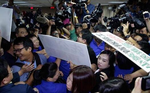 劳工团体多次冲击蔡英文办公室,抗议民进党力推的“一例一休”法案。