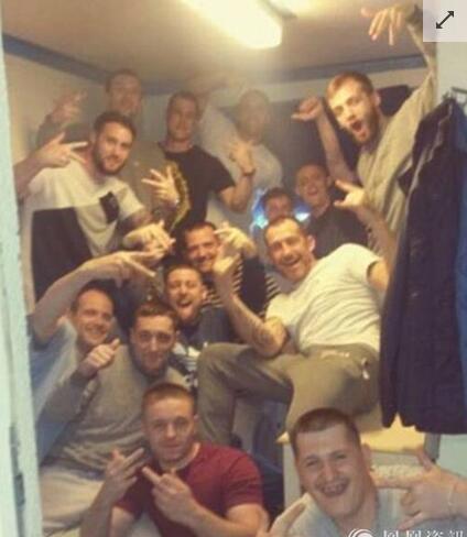 犯人发布的在男子监狱里的合影,看起来与大学生合影没有什么不同。