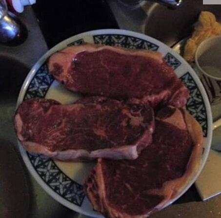 一个犯人发布的牛排照片,尚不清楚犯人们是怎么走私得到它们的。