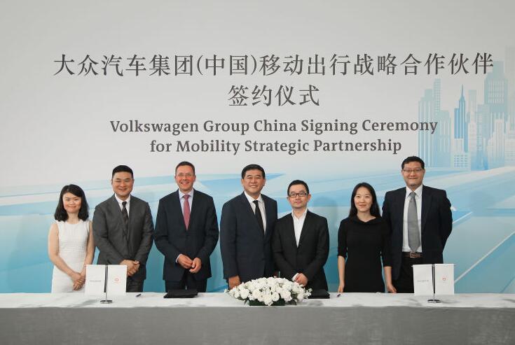 滴滴出行與大眾汽車集團(中國)合影,右三為滴滴出行戰略合作部副總裁楊峻