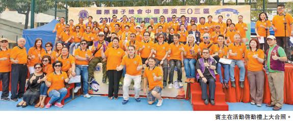 【香港商報網訊】記者吳玲報道:國際獅子總會中國港澳303區日前假深水保安道球場舉行「2016-2017年度港澳獅子服務日—老友相伴‧活得精彩」啟動禮,服務日籌委會主席、國際獅子總會中國港澳303區第二副總監郭美華,總監馮妙雲,深水埗區議會主席陳偉明,深水社會福利專員郭李夢儀,深水埗警區警民關係主任總警司高振邦等蒞臨主禮,現場設特色攤位、健康講座、金曲獻唱,並大派福袋,逾800名嘉賓、街坊、長者及義工歡度周日,樂也融融。