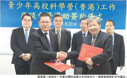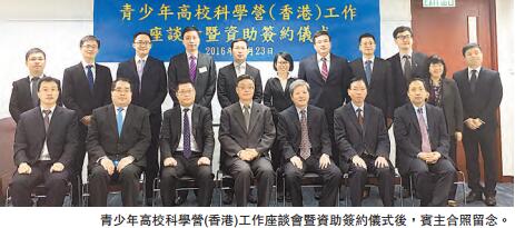 【香港商報网訊】記者莊園報道:青少年高校科學營(香港)工作座談會暨資助簽約儀式昨日舉行。全國政協委員、香港金利來集團副主席兼行政總裁曾智明成立的「曾智明青少年發展基金會」將捐出一千萬港元,2017年開始,每年贊助香港營員550人(其中包括500名中學生,50名帶隊教師),參加「青少年高校科學營」活動,為期5年。另外,金利來集團亦贊助香港營員參加「青少年高小活動」的營服。