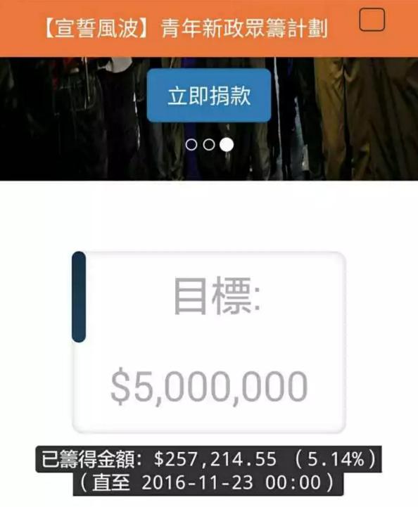 被香港高等法院裁定丧失立法会议席的本土激进分子梁颂恒和游蕙祯日前提出上诉,上诉庭决定11月24日展开聆讯。梁游明言无法支付诉讼费用,11月17日起,其所在的“青年新政”竟想到发起网上众筹,声称要向全港市民筹集500万港元上诉。截至11月23日零点,据“青政”网上记录已筹得25.7万元。