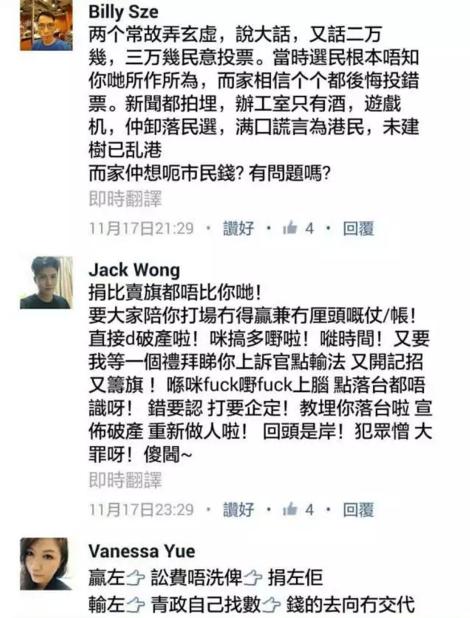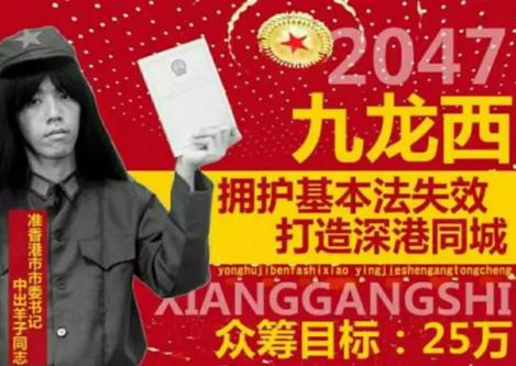 “港独”分子中出羊子在facebook声称众筹25万元拟参加九龙西补选。