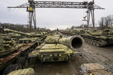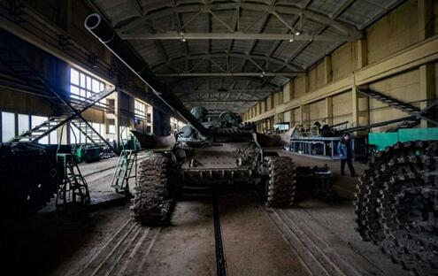 乌克兰利沃夫装甲工厂,大批坦克在此进行修复。