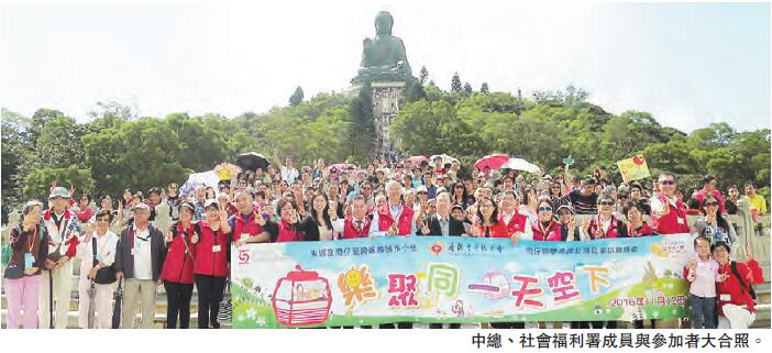 【香港商報網訊】香港中華總商會轄下愛心行動委員會、灣仔區聯絡處及港島東區聯絡處日前與社會福利署東區及灣仔區跨服務協作小組合辦「樂聚同一天空下」愛心活動,招待近300位來自灣仔區及港島東區弱勢社群人士乘搭昂坪360纜車及遊覽大嶼山,共度輕鬆愉快周末。