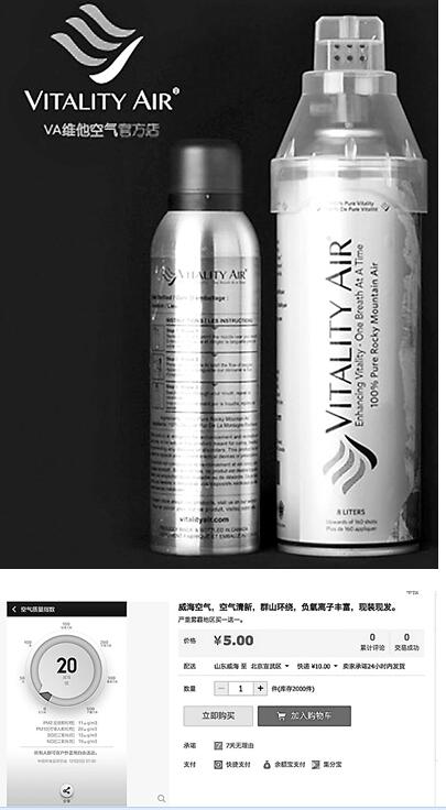 “想呼吸到最純凈、最新鮮的空氣嗎?那就來瓶威海最純凈新鮮的空氣吧!無霧霾,絕對純凈!可海邊,可山區,不加價!”在某電商平臺上,一家名為“威海自駕游俱樂部”的網店,掛出了名為“威海天然新鮮空氣”的商品,并打出了如上的廣告語。