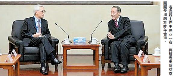 【香港商报讯】记者周伟立报道:「帮港出声」昨继续访京行程。昨早,访京团一行与全国港澳研究会会长陈佐洱举行座谈会,下午与港澳办主任王光亚会面。王光亚表明,中央主管部门接受无回乡证的反对派人士申请回乡证,是希望他们到内地交流,了解国家发展。他特别提到,希望港人要清楚「一国两制」精神,清楚过去多年来若香港提出任何政策帮忙,中央永远只会帮香港,不会伤害香港。