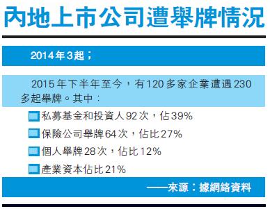 從2015年下半年,內地險資投資股票比例急升,到了今年下半年,險資的股權投資比例又開始走上上升通道。從去年6月至今,險資舉牌規模達到1700億元。