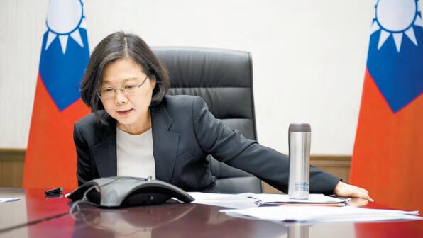 由臺灣「總統府」提供,蔡英文與特朗普通電話的擺拍。中央社
