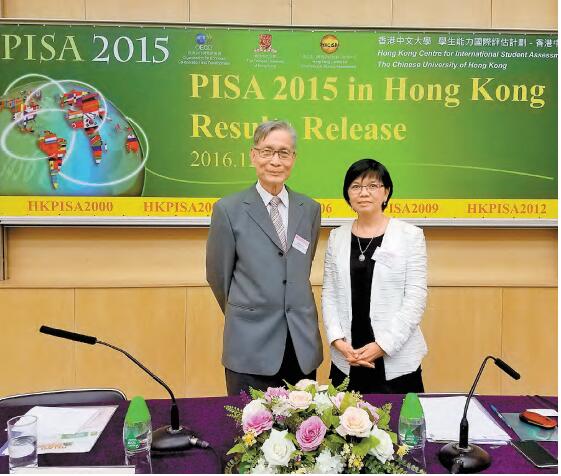 何瑞珠(左)黃顯華公布「學生能力國際評估計劃」(PISA)的研究結果