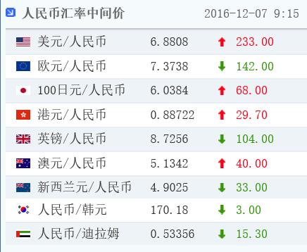 12月7日消息,早間中國外匯交易中心發布公告,人民幣(6.8879, 0.0089, 0.13%)匯率中間價報6.8808,較前一交易日貶值233個基點,為近四周來最大降幅。