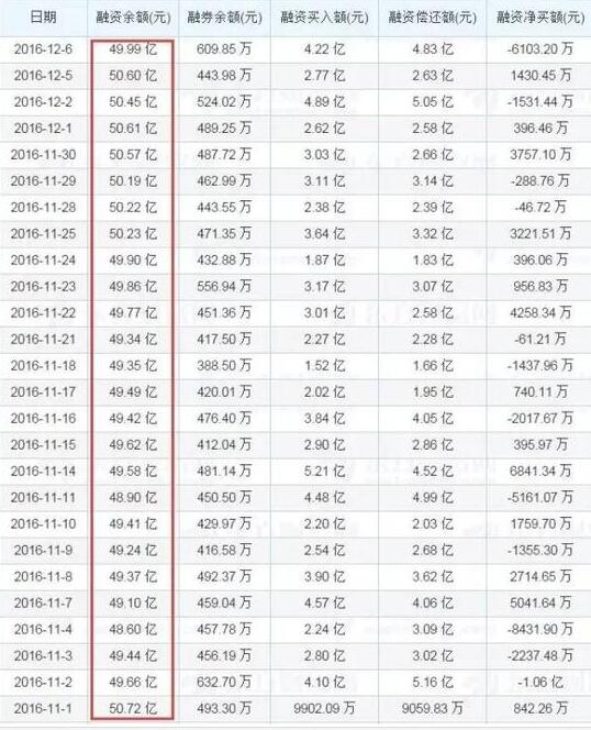 最新數據顯示,截至12月6日,樂視網的融資余額為49.99億元。而自11月份以來,樂視網的融資余額基本維持在48-51億元之間。