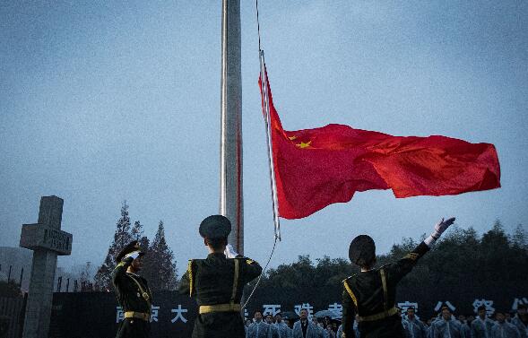 12月13日是第三个南京大屠杀死难者国家公祭日。早上7时整,侵华日军南京大屠杀遇难同胞纪念馆举行升国旗和降半旗仪式。