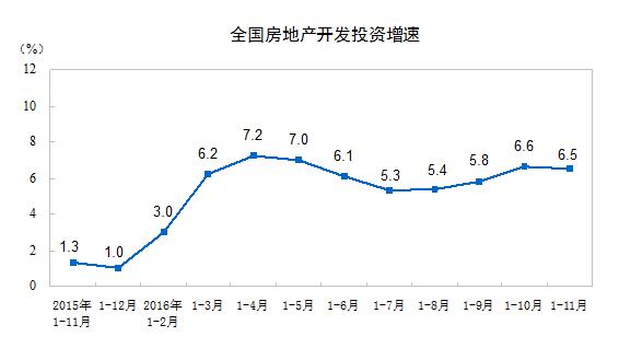 前11月,全國房地產開發投資93387億元,同比名義增長6.5%,增速比1-10月份回落0.1個百分點。