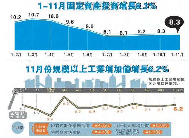 【香港商報網訊】今年前11個月,中國城鎮固定資產投資平穩增長,民間投資增速連續三個月回升,房地產開發投資增速小幅回落,整體延續11月經濟運行穩中向好的基調。據國家統計局數據,2016年1-11月份,全國固定資產投資538548億元,同比名義增長8.3%,增速與1-10月份持平,其中,國有控股投資191080億元,增長20.2%。環比來看,11月份固定資產投資增長0.54%。