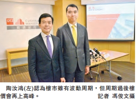 至於被問到早前IMF報告指出樓價即將見頂,陶汝鴻回應指:「以我經驗,樓價係唔會見頂」。他解釋,樓市雖然有波動周期,且周期內存在正面及負面因素,但由於有關因素「唔會一面倒贏晒」,故周期過後樓價會再上高峰。