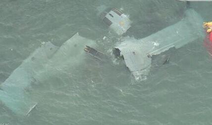 日本NHK电视台视频画面:部分机体还在海上漂流