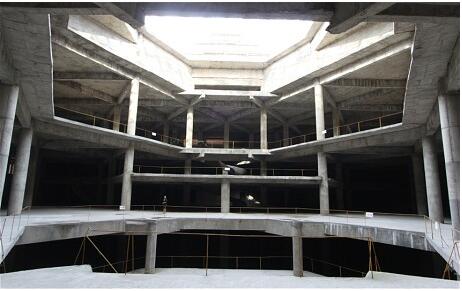 2012年,部分外國記者被獲準進入柳京飯店。圖為記者拍攝的柳京飯店內部照片,可以看到,飯店內部大廳還處于水泥鋼筋裸露狀態。