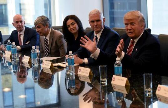 美國科技行業有十三位高管參加了此次在特朗普大廈舉行的會議,包括蘋果CEO蒂姆·庫克(Tim Cook)、亞馬遜CEO傑夫·貝佐斯(Jeff Bezos)、Facebook首席運營官謝莉·桑德伯格(Sheryl Sandberg)、特斯拉CEO埃隆·馬斯克(Elon Musk)及穀歌母公司Alphabet CEO拉裏·佩奇(Larry Page)和執行董事長埃裏克·施密特(Eric Schmidt)、微軟CEO薩提亞·納德拉( Satya Nadella )和總裁布拉德·史密斯(Brad Smith)。