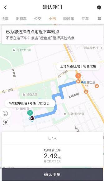 開通地區的用戶可通過手機客戶端滴滴出行來呼叫小巴,小巴會智能計算乘客上車點和下車點,乘客選擇確認後,就會通知用戶和小巴“約會”的時間和地點。這些看似簡單的動作,卻是通過複雜的技術來實現。