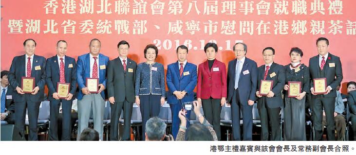 【香港商報網訊】記者余江強報道:香港湖北聯誼會日前假香港灣仔會議展覽中心舉行「香港湖北聯誼會第八屆理事會就職典禮暨湖北省委統戰部、咸寧市慰問在港鄉親茶話會」。湖北省省委常委、統戰部部長梁惠玲,中聯辦副主任仇鴻,湖北聯誼會榮譽會長梁亮勝、葉長鳴及戴德豐、李慧攌等擔任主禮嘉賓,逾1500位會員和社會名人出席了典禮。連任會長的謝俊明強調,第八屆理事會將繼續積極參與香港社會事務,貫徹「一國兩制」方針,積極支持特區政府依法施政,加強與香港愛國愛港友好團體的交往與合作,推進香港參與國家開放發展大格局。