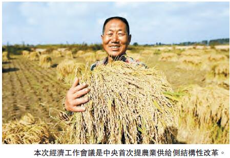 同時結構性改革增加了三方面內容:深入推進農業供給側結構性改革、著力振興實體經濟、促進房地產市場平穩健康發展。這是中央首次提農業供給側結構性改革,以前談的是農業發展方式。
