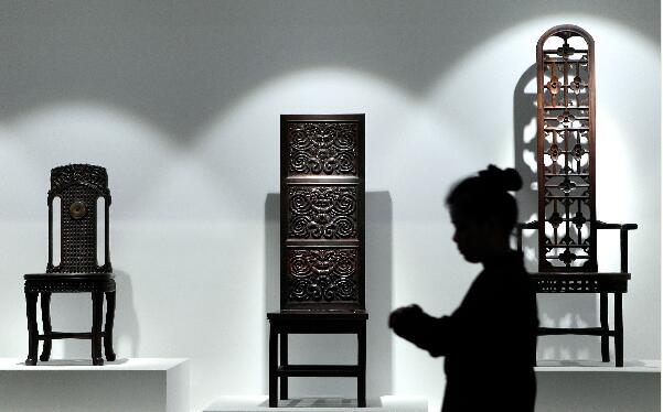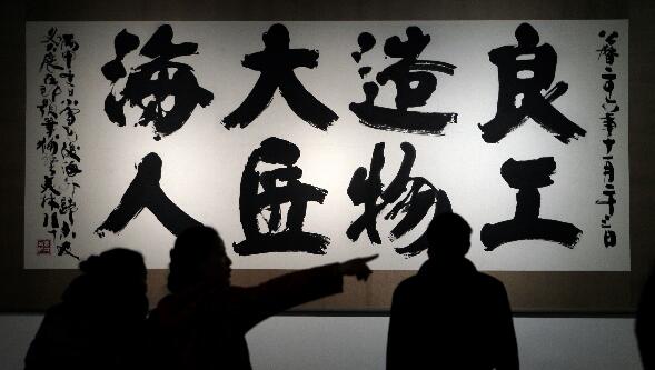 12月21日,一名女子在“美林的世界·韓美林八十大展”上參觀韓美林的書法作品。
