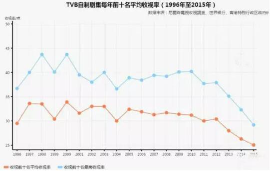 其实,近年来TVB剧集一直无太大起色。就是颁奖典礼,也只有2007年同2015年收视高一点,最高收视是2009年黎耀祥同邓萃雯凭借《巾帼枭雄》成为视帝视后,最高收视有44点。