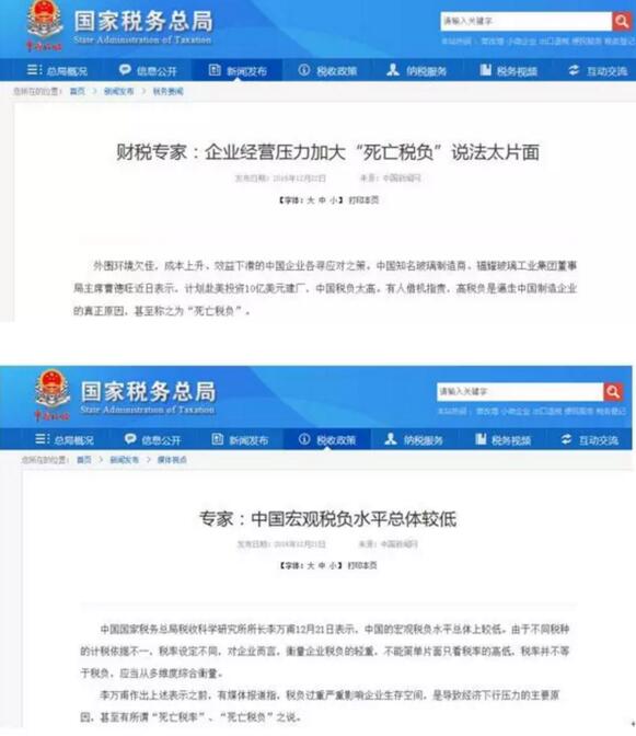 22日,國稅總局轉發了中國新聞網的一篇文章,題為《財稅專家:企業經營壓力加大“死亡稅負”說法太片面》,文中稱,