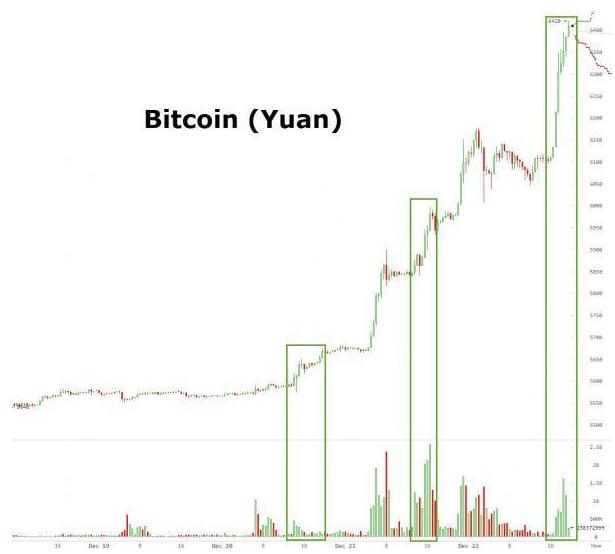 2016年以來,中國的比特幣交易也十分火爆,也一定程度推漲價格。此前騰訊棱鏡援引火幣網COO朱嘉偉表示,在人民幣匯率波動時,投資者會考慮配置一些保值和避險資產,特別是與人民幣匯率聯動呈弱相關和負相關的資產,例如美元、黃金、比特幣等。