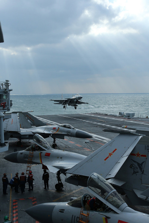 連日來,中國航母遼寧艦與數艘驅逐艦、護衛艦組成編隊,攜多架殲-15艦載戰鬥機和多型艦載直升機開展跨海區訓練和試驗任務。23日,在黃海某海空域,多批次殲-15艦載戰鬥機從遼寧艦起飛升空,開展了多項訓練任務。昨天上午,航母編隊轉戰東海,在東海海空域開展全要素訓練和試驗任務。中央軍委委員、海軍司令員吳勝利在遼寧艦指導訓練。