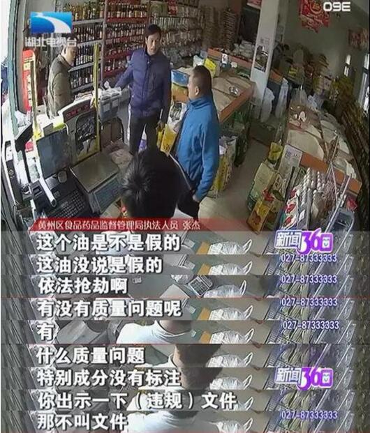 而湖北電視臺此前曝光的監控視頻則顯示,執法人員在執法過程中,以“樣品調查”為由,從一家小商店一次性拿走了36瓶食用油。