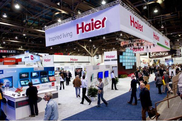 資料圖片:在美國拉斯韋加斯國際消費電子展上,人們在設在中央展區的海爾展臺參觀(2012年1月11日攝)。 新華社發