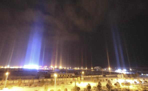 12月26日晚,内蒙古二连浩特市出现日柱现象,“日柱”现象从晚间19时30分出现,持续至21时30分。建筑物的照明灯光被反射成一道道色彩斑斓的光柱,把城市夜空点缀得如梦如幻。当天气很冷而太阳正好升起或落下时,落下的冰晶会反射阳光并生成一道罕见的光柱,生成日柱效应。