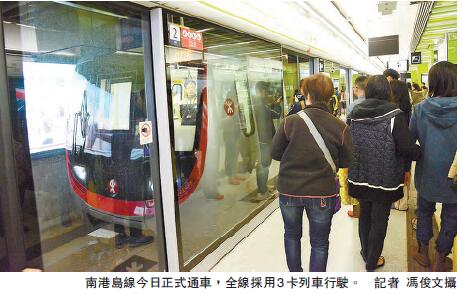 【香港商報网訊】記者周偉立報道:興建逾5年的港鐵南港島線今日通車。就港鐵由內地引入10列3卡無人列車行駛新線,立法會鐵路事宜小組委員會主席田北辰批評沿線月台沒有預留空間擴建,擔心將來無法增加車卡疏導大量的乘客。港鐵發言人回應,南港島線的3卡車設計,是根據當區人口和經濟活動而規劃,並按預計的乘客量而定,足夠應付至2031年時的載客量。