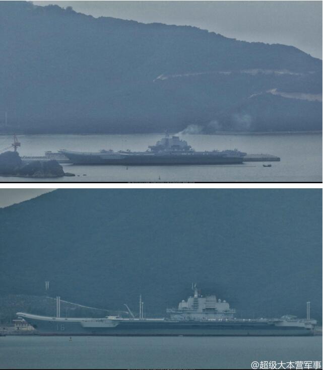 微博網友發布的照片顯示,遼寧艦現身海南三亞某軍港外。(來源@在下牛魔王)