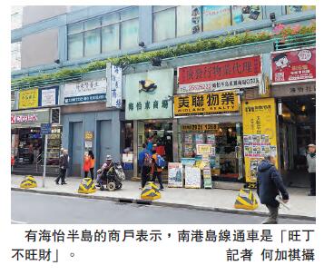 另外,有在海怡半島做了裝修水電20年的商戶李先生表示,通車後的人流的確比以往較多,但看見有不少商舖以往加租也只是加少少,但自港鐵工程後便開始加8000至9000元,亦有商戶因舖租太貴而搬走。他坦言,通車後是「旺丁不旺財」。